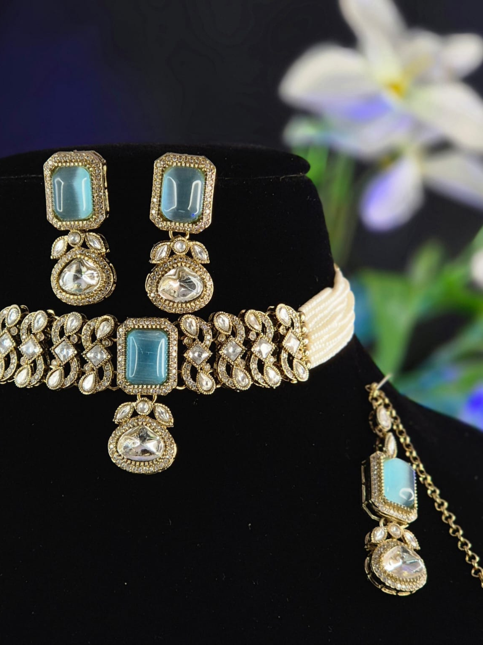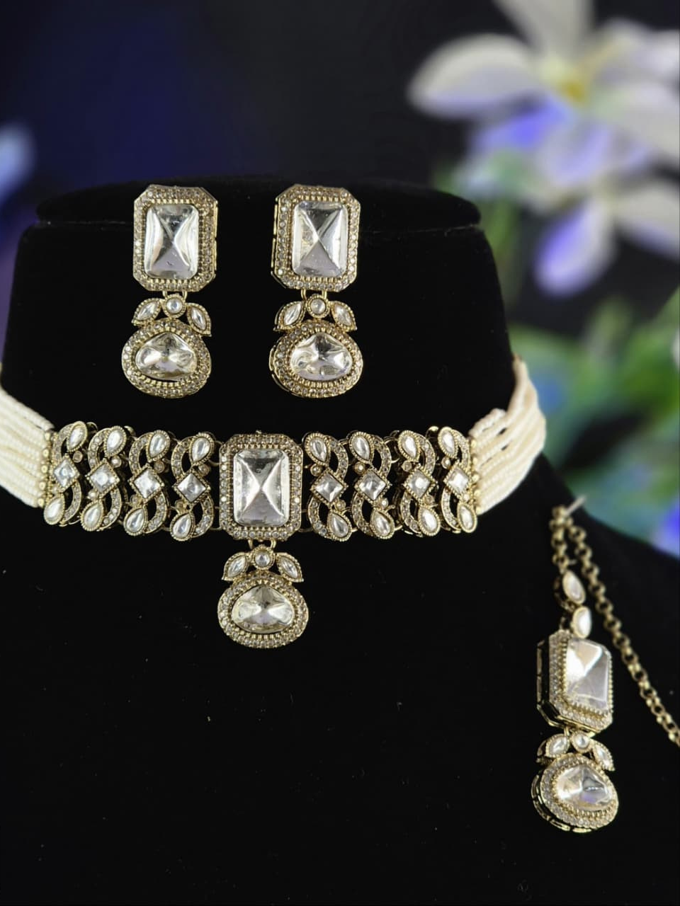 Timeless elegance meets royal charm in this exquisite piece, crafted with premium Kundan stones that radiate a luxurious traditional appeal. Perfect for weddings, festivities, and grand occasions where grace takes centre stage. A celebration of heritage and beauty, this jewellery set blends timeless elegance with royal sophistication. Adorned with premium Kundan stones, it adds a touch of regal charm to every traditional look.